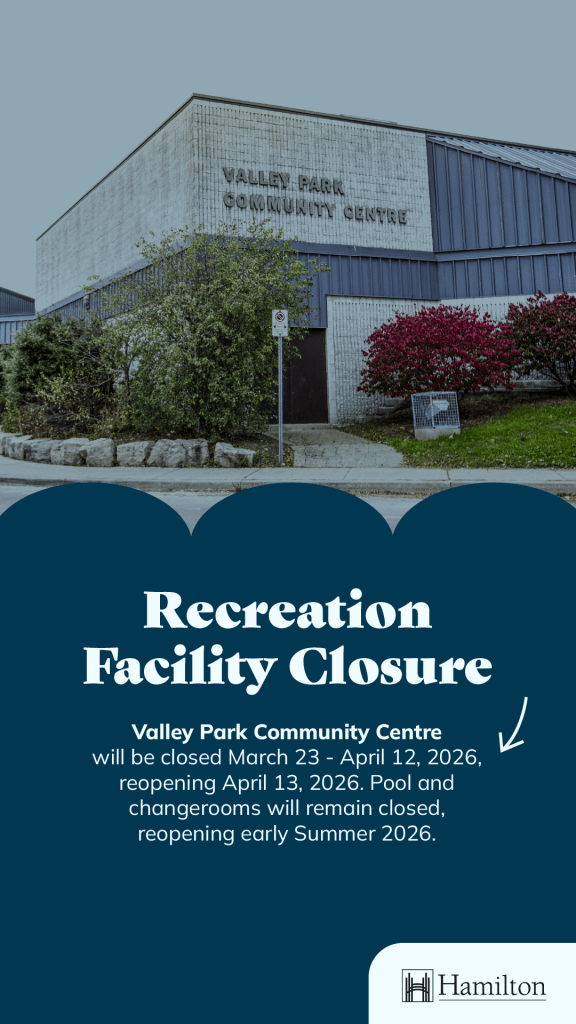 During this closure, residents are encouraged to attend drop-in and registered programming at nearby locations including Huntington Park, Hill Park, Sir Wilfrid Laurier and Stoney Creek Recreation Centres.