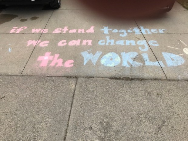 Fortunately, my positive and hopeful outlook quickly returned as I drove by this quaint and gracious message of hope written on my neighbour’s sidewalk.