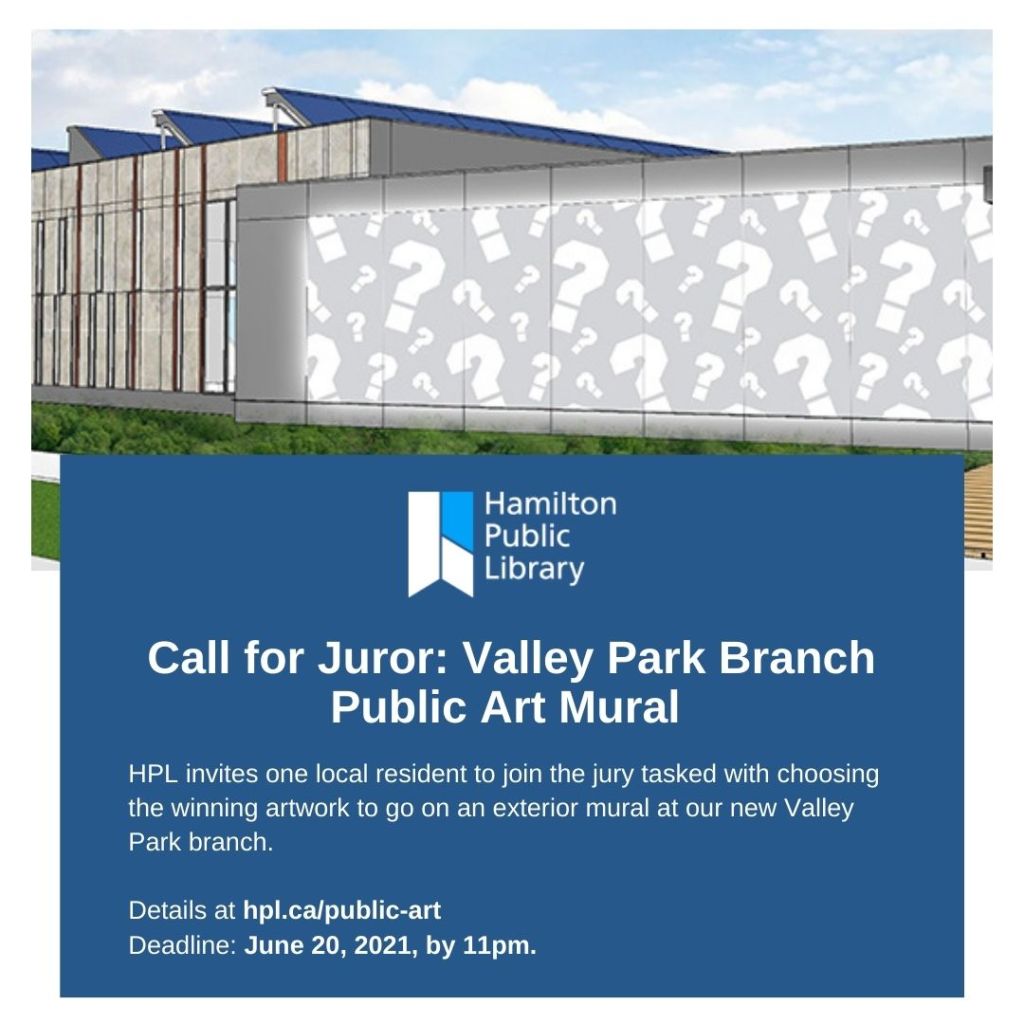 Do you enjoy public art? The Hamilton Public Library Board is looking for a local resident to sit on a jury to choose the winning artwork for the new Valley Park Branch Public Art Mural.