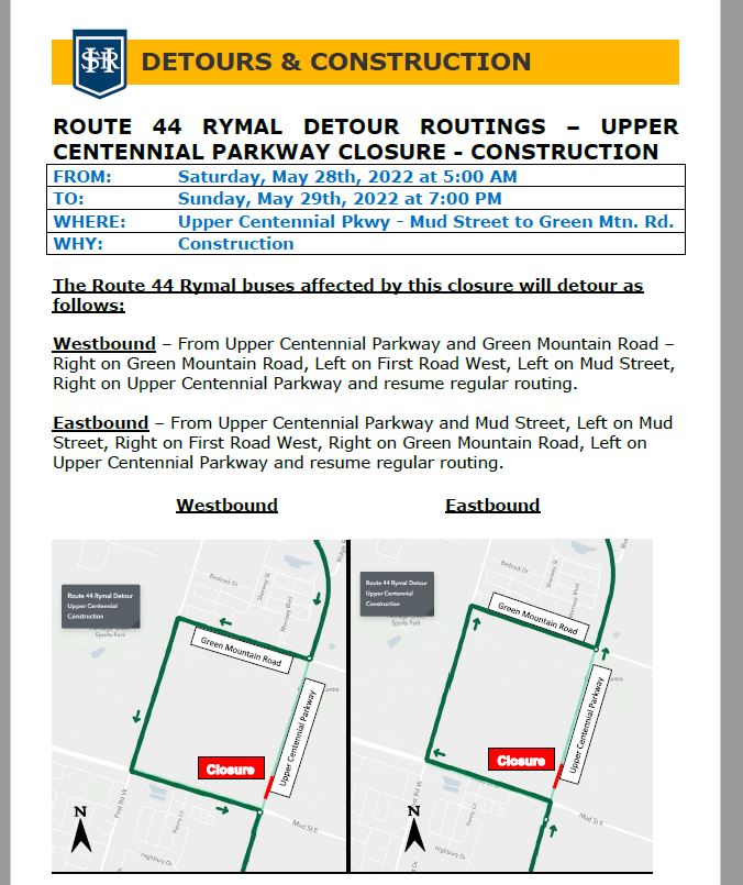 HSR Notice Route 44 Detour Posted on May 26, 2022May 26, 2022 by Councillor Brad Clark Share this: Click to share on X (Opens in new window) X Click to share on Facebook (Opens in new window) Facebook Like Loading...