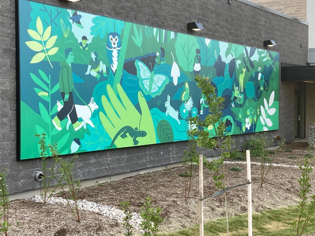 Artist Vivian Rosas’ mural celebrates our community’s geographic environment and HPL’s commitment to sustainability. This spectacular piece of art is visible from Marston St. and Paramount Dr.
