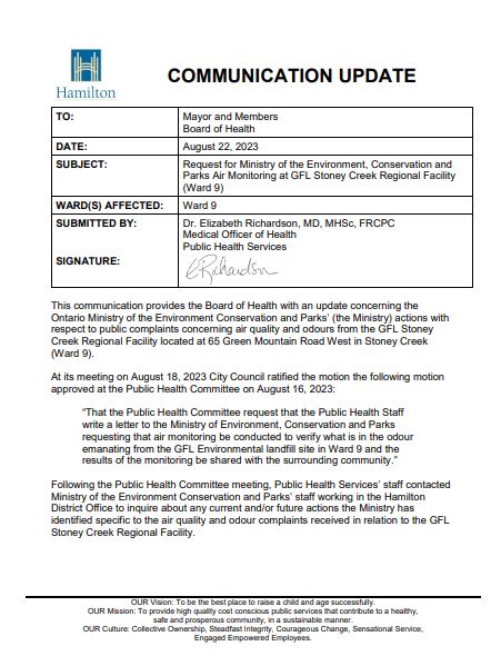 Public Health Update Report GFL Landfill Posted on August 22, 2023 by Councillor Brad Clark Share this: Click to share on X (Opens in new window) X Click to share on Facebook (Opens in new window) Facebook Like Loading...