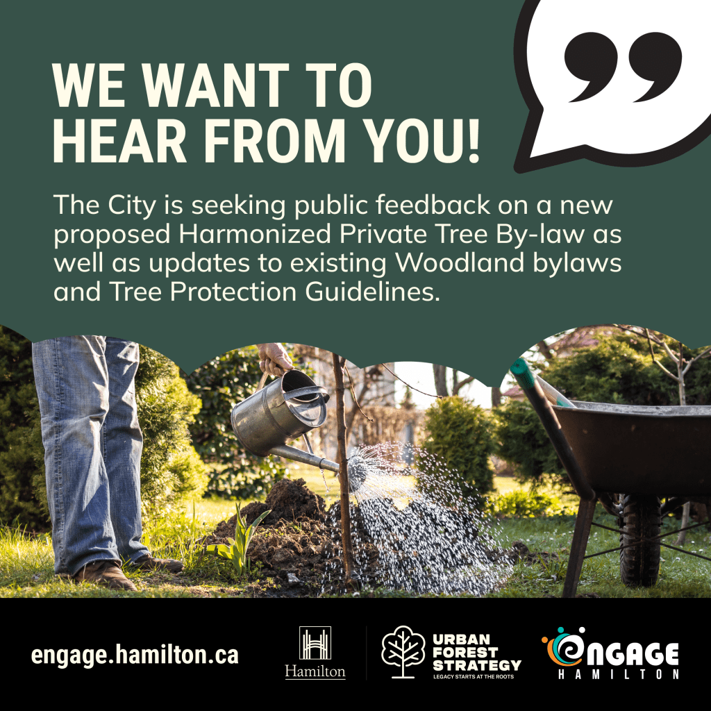 We are inviting residents to learn more and have their say by attending an in-person event and completing the online survey here: https://engage.hamilton.ca/harmonizedprivatetreebylaw
